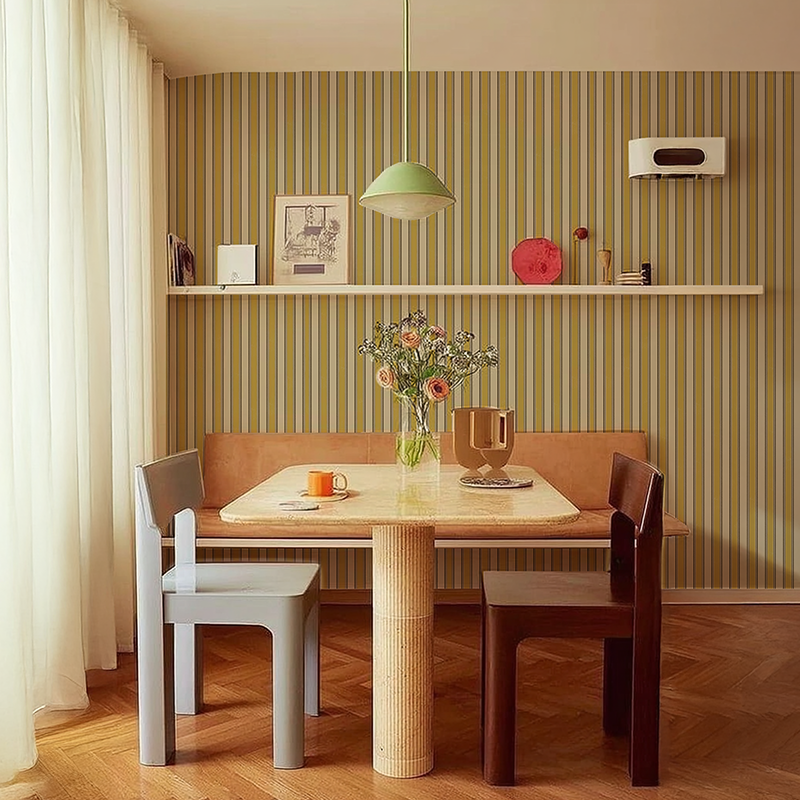· 여러 롤을 붙일 때는 왼쪽에서 오른쪽으로 붙이시고, 패턴을 이어 붙이기 위해 벽지 우측 끝 흰색 여백 (0.4cm) 위에 겹쳐 시공 하시면 됩니다.