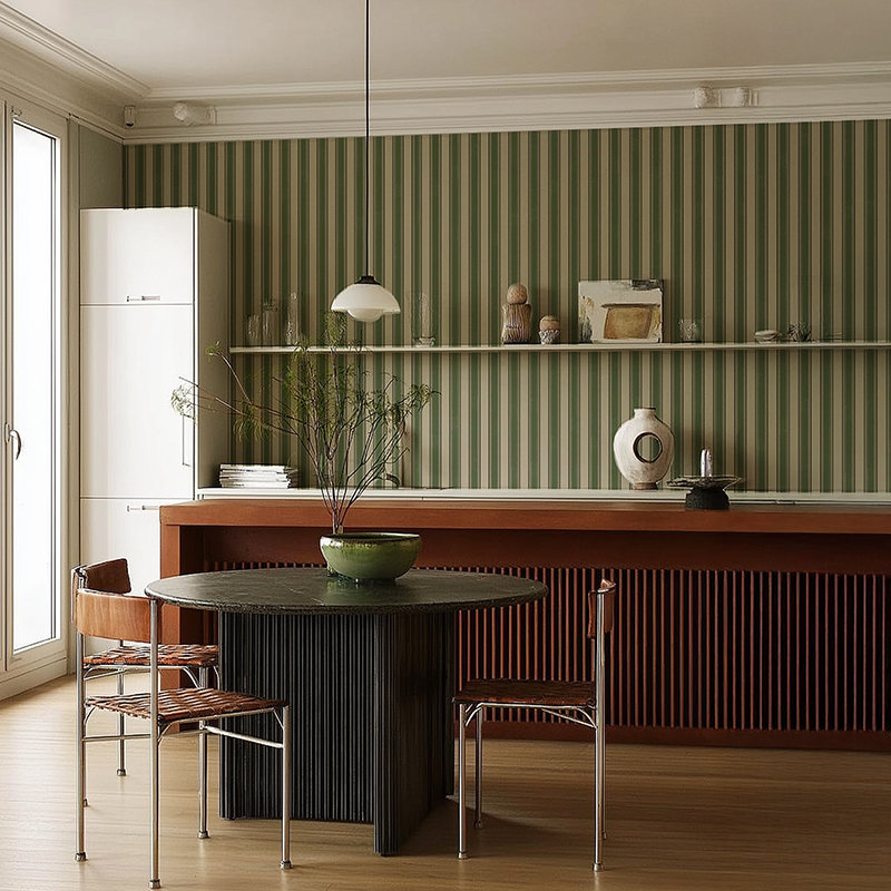 · 여러 롤을 붙일 때는 왼쪽에서 오른쪽으로 붙이시고, 패턴을 이어 붙이기 위해 벽지 우측 끝 흰색 여백 (0.4cm) 위에 겹쳐 시공 하시면 됩니다.