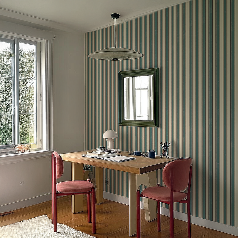 · 여러 롤을 붙일 때는 왼쪽에서 오른쪽으로 붙이시고, 패턴을 이어 붙이기 위해 벽지 우측 끝 흰색 여백 (0.4cm) 위에 겹쳐 시공 하시면 됩니다.