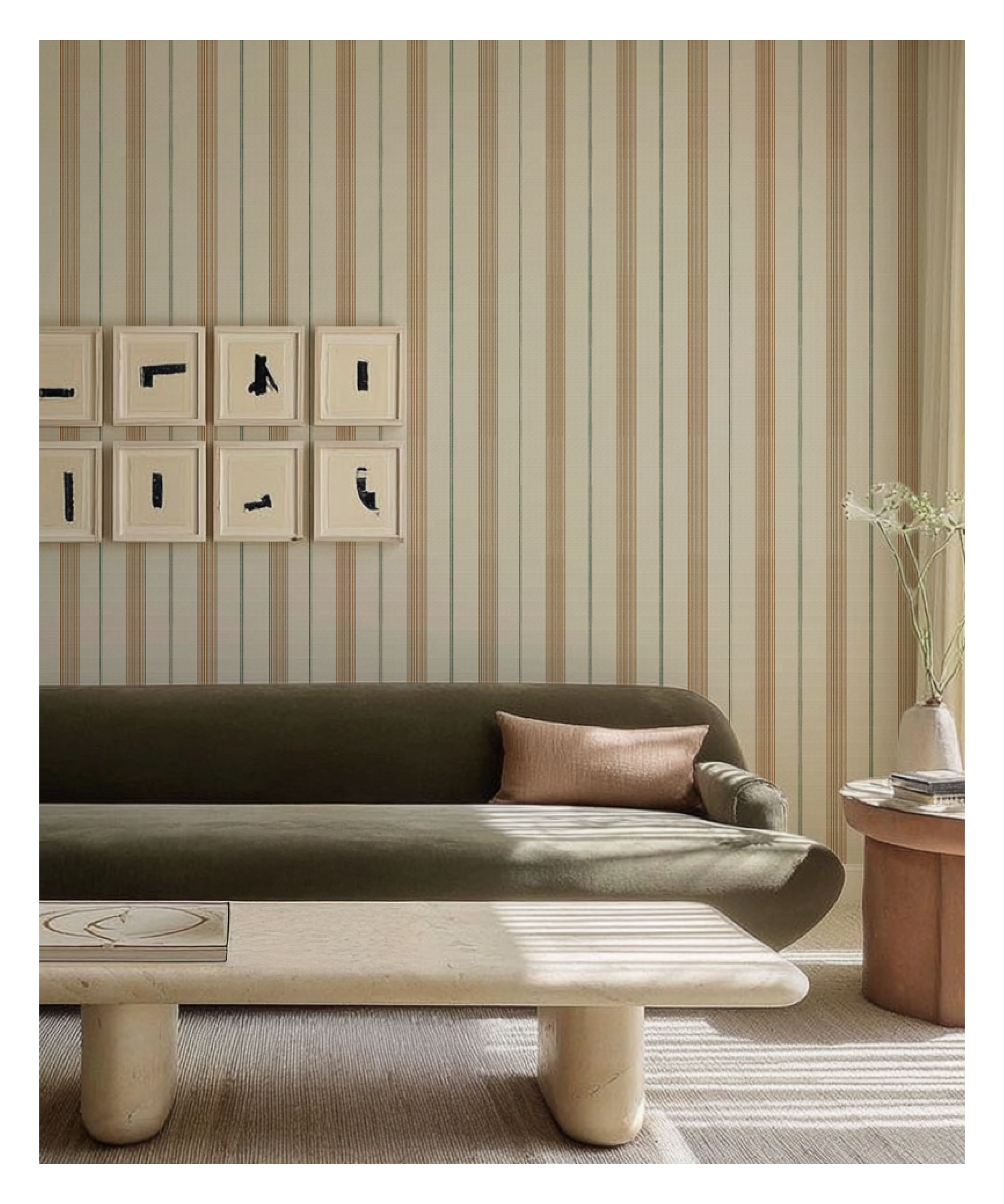 · 여러 롤을 붙일 때는 왼쪽에서 오른쪽으로 붙이시고, 패턴을 이어 붙이기 위해 벽지 우측 끝 흰색 여백 (0.4cm) 위에 겹쳐 시공 하시면 됩니다.
