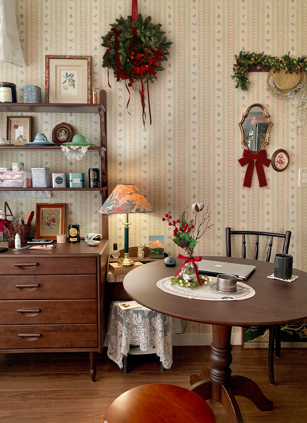 · 여러 롤을 붙일 때는 왼쪽에서 오른쪽으로 붙이시고, 패턴을 이어 붙이기 위해 벽지 우측 끝 흰색 여백 (0.4cm) 위에 겹쳐 시공 하시면 됩니다.