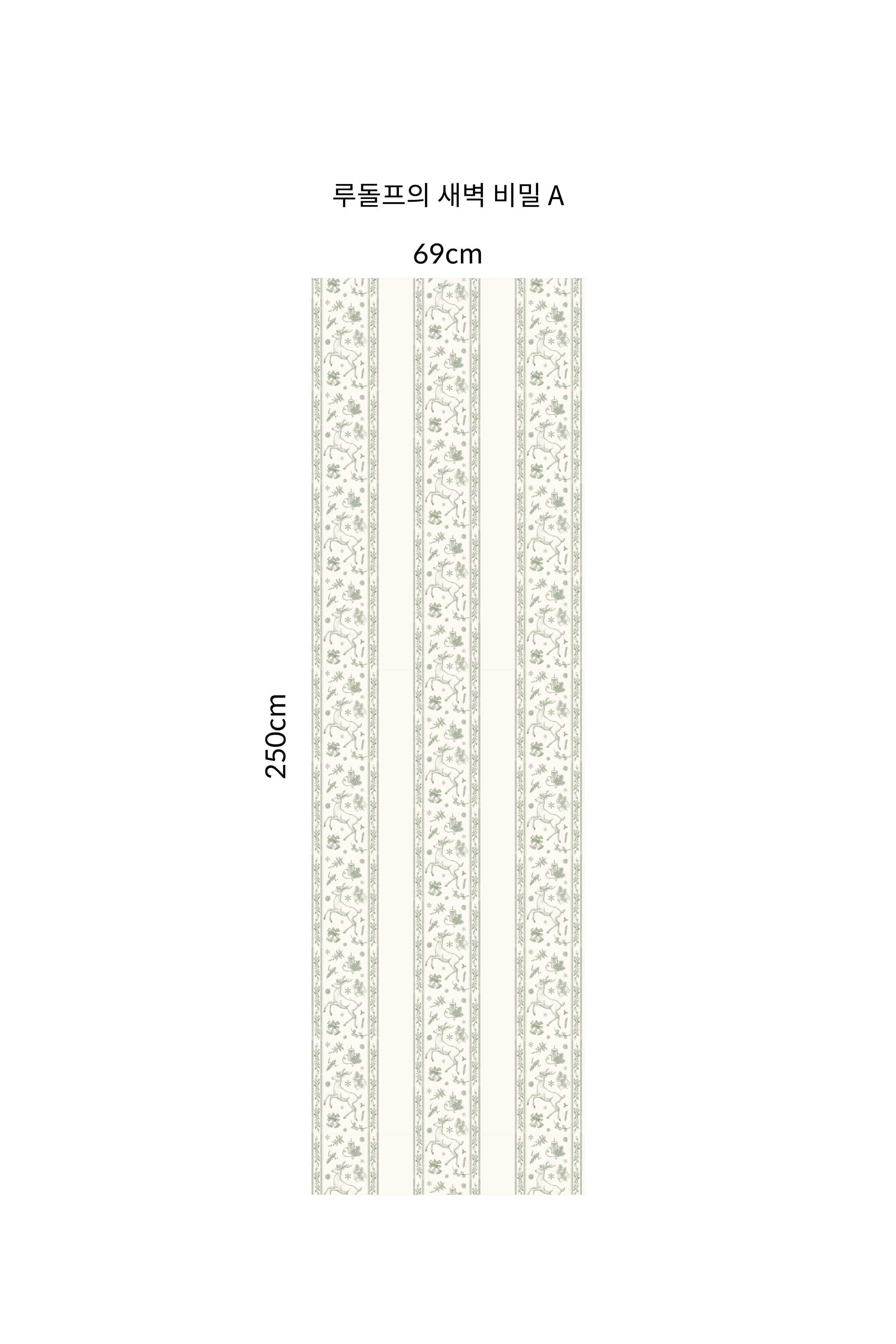 · 여러 롤을 붙일 때는 왼쪽에서 오른쪽으로 붙이시고, 패턴을 이어 붙이기 위해 벽지 우측 끝 흰색 여백 (0.4cm) 위에 겹쳐 시공 하시면 됩니다.