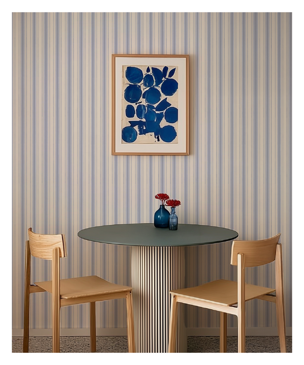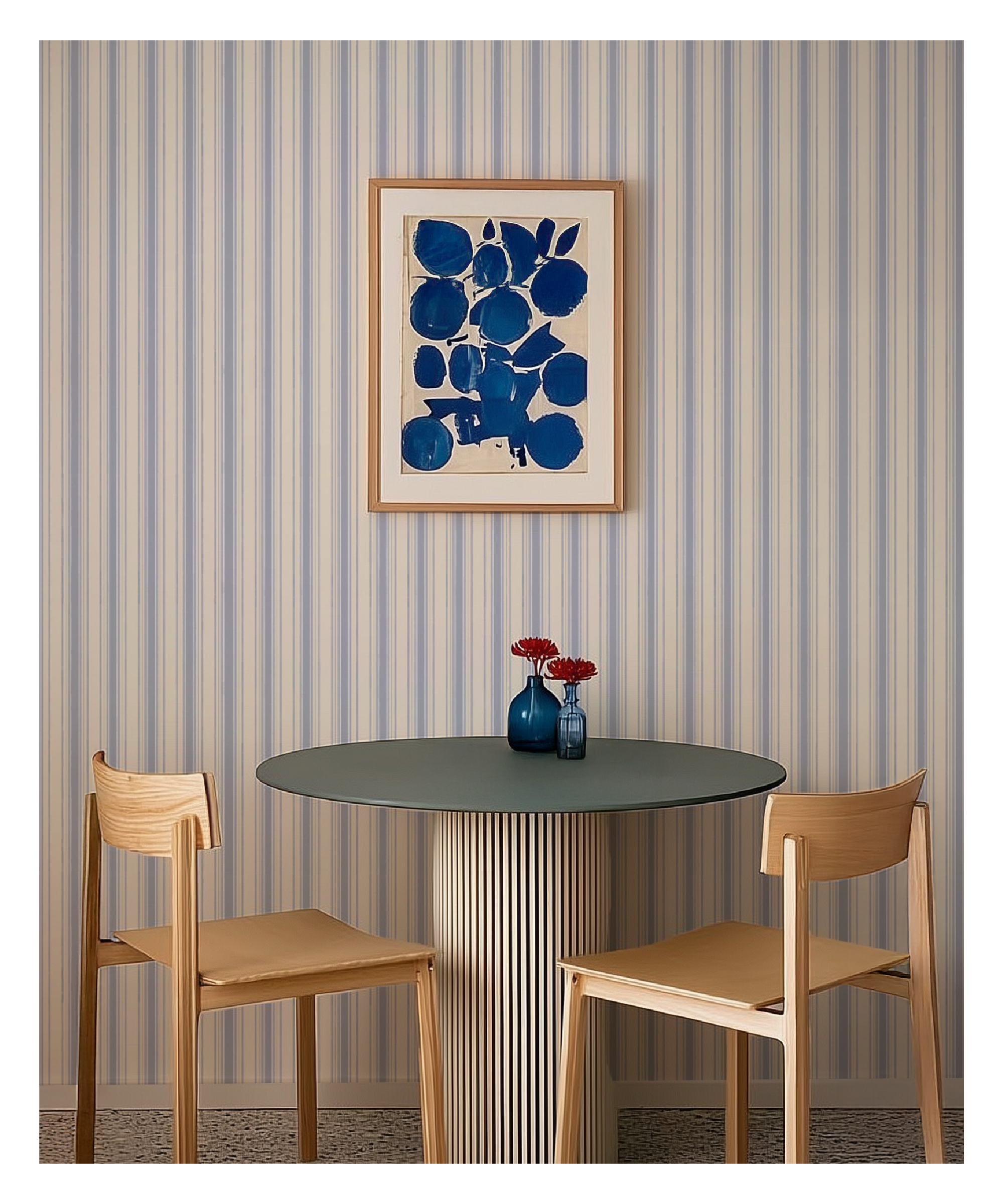 · 여러 롤을 붙일 때는 왼쪽에서 오른쪽으로 붙이시고, 패턴을 이어 붙이기 위해 벽지 우측 끝 흰색 여백 (0.4cm) 위에 겹쳐 시공 하시면 됩니다.