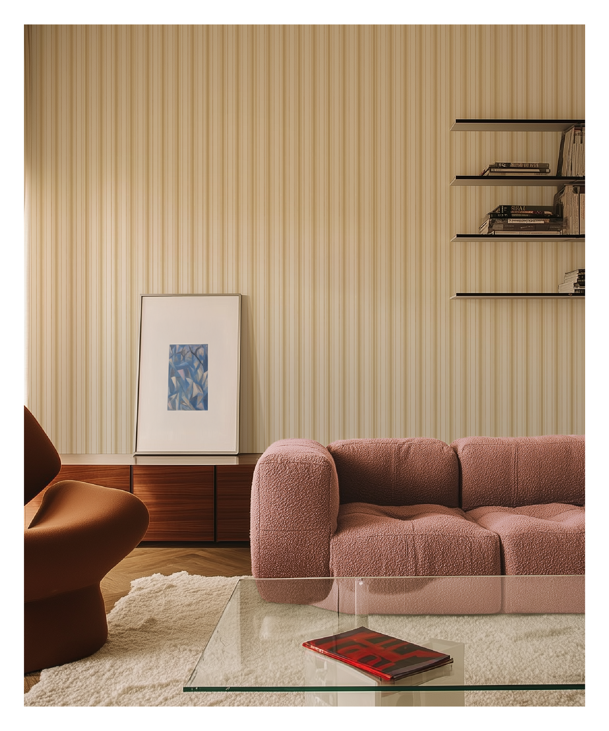 · 여러 롤을 붙일 때는 왼쪽에서 오른쪽으로 붙이시고, 패턴을 이어 붙이기 위해 벽지 우측 끝 흰색 여백 (0.4cm) 위에 겹쳐 시공 하시면 됩니다.