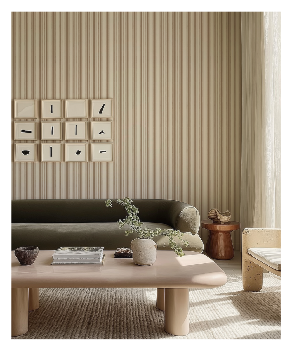 · 여러 롤을 붙일 때는 왼쪽에서 오른쪽으로 붙이시고, 패턴을 이어 붙이기 위해 벽지 우측 끝 흰색 여백 (0.4cm) 위에 겹쳐 시공 하시면 됩니다.