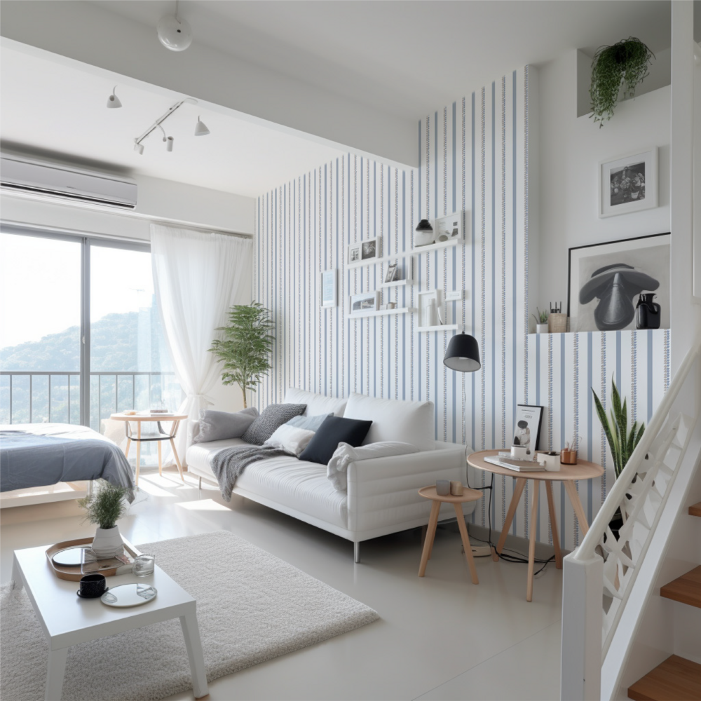 · 여러 롤을 붙일 때는 왼쪽에서 오른쪽으로 붙이시고, 패턴을 이어 붙이기 위해 벽지 우측 끝 흰색 여백 (0.4cm) 위에 겹쳐 시공 하시면 됩니다.