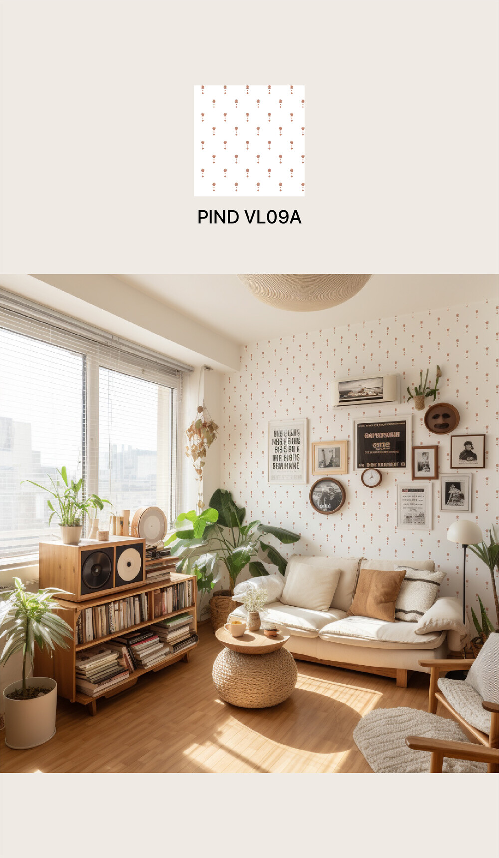 · 여러 롤을 붙일 때는 왼쪽에서 오른쪽으로 붙이시고, 패턴을 이어 붙이기 위해 벽지 우측 끝 흰색 여백 (0.4cm) 위에 겹쳐 시공 하시면 됩니다.