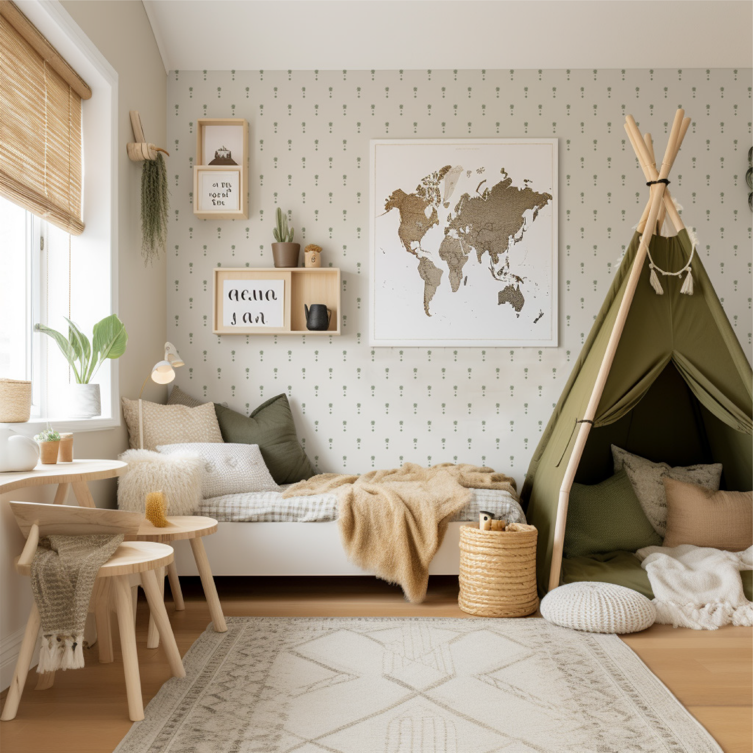 · 여러 롤을 붙일 때는 왼쪽에서 오른쪽으로 붙이시고, 패턴을 이어 붙이기 위해 벽지 우측 끝 흰색 여백 (0.4cm) 위에 겹쳐 시공 하시면 됩니다.