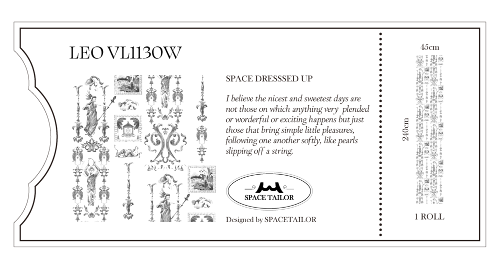 · 여러 롤을 붙일 때는 왼쪽에서 오른쪽으로 붙이시고, 패턴을 이어 붙이기 위해 벽지 우측 끝 흰색 여백 (0.4cm) 위에 겹쳐 시공 하시면 됩니다.