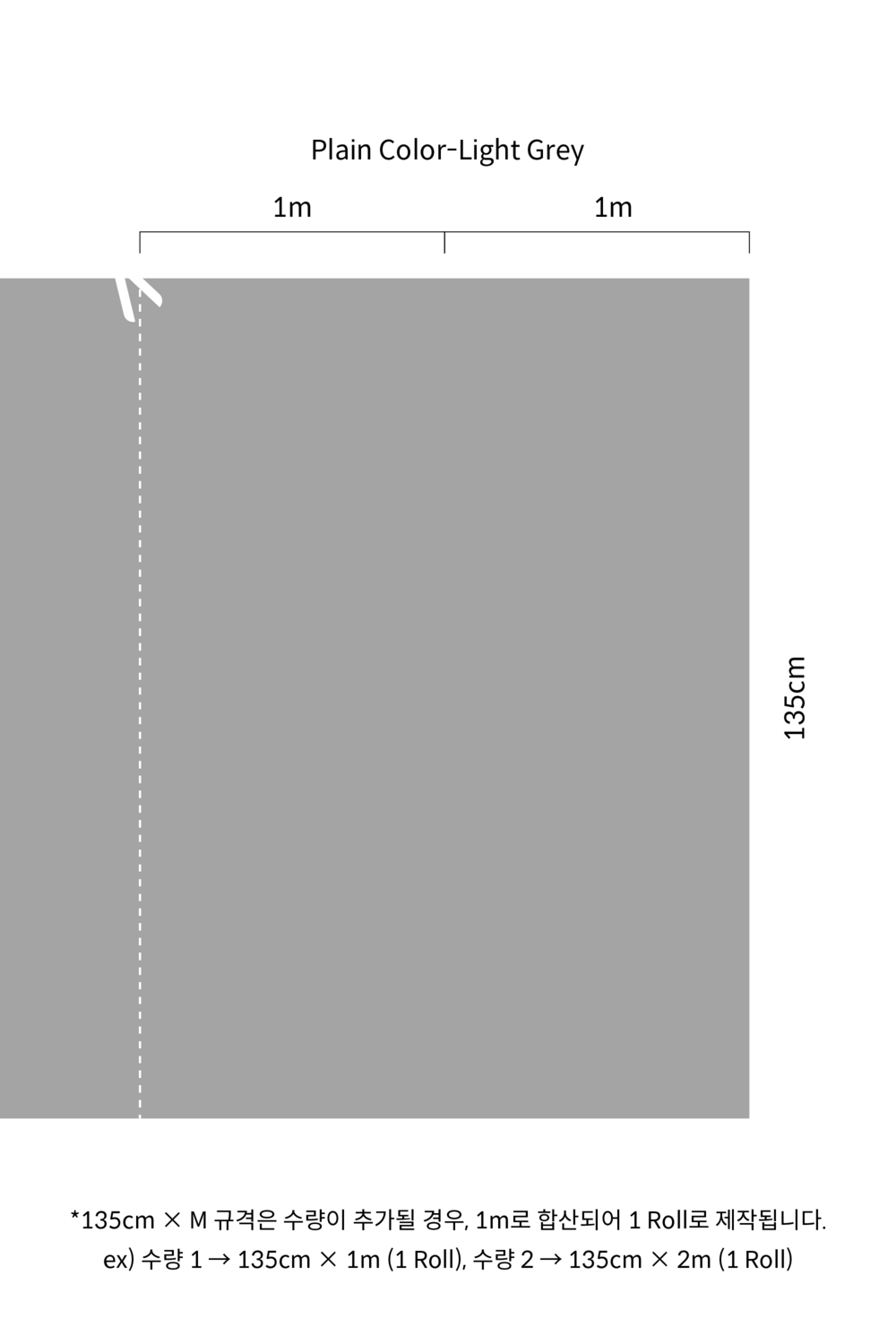 · 여러 롤을 붙일 때는 왼쪽에서 오른쪽으로 붙이시고, 패턴을 이어 붙이기 위해 벽지 우측 끝 흰색 여백 (0.4cm) 위에 겹쳐 시공 하시면 됩니다.