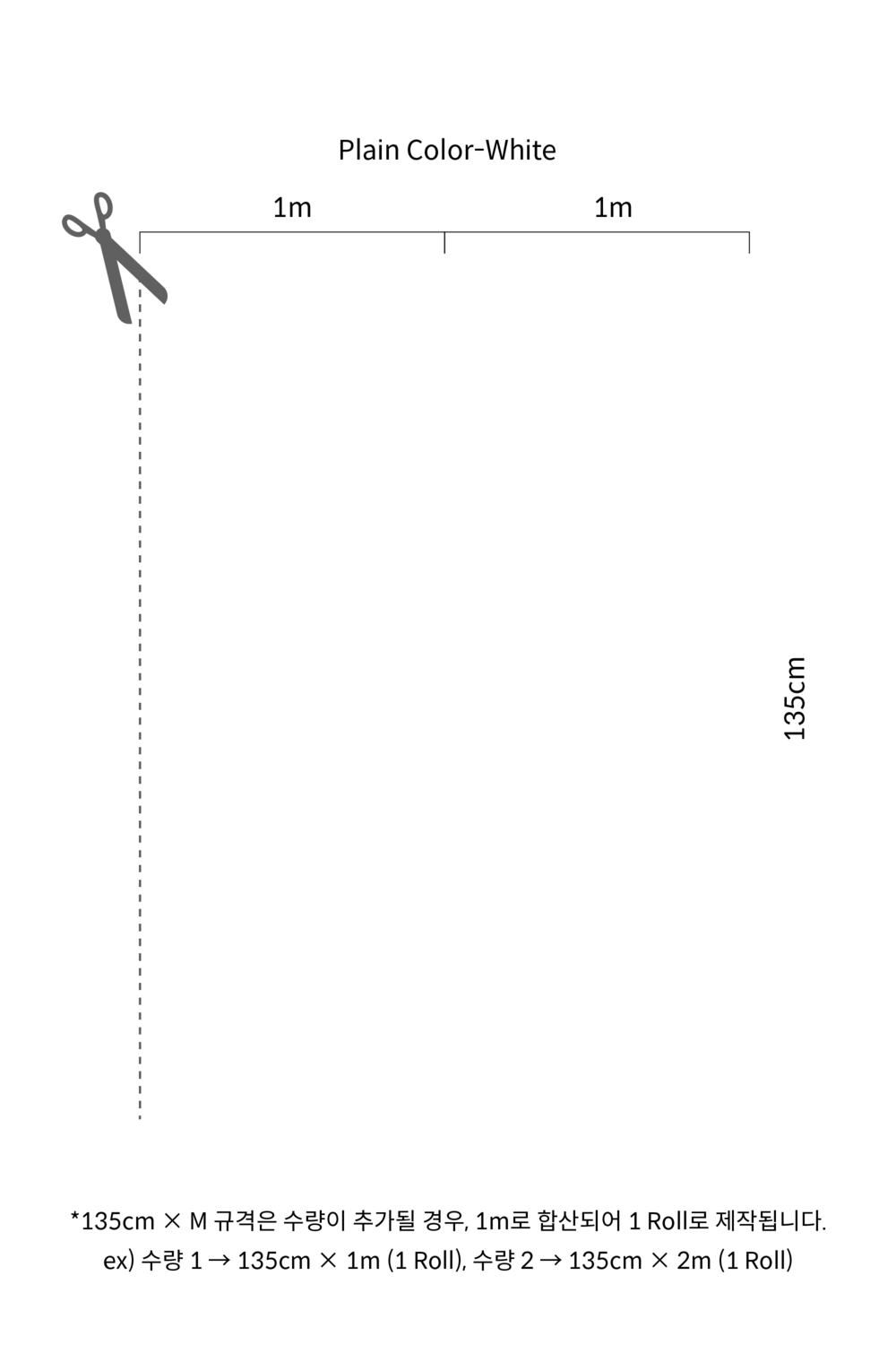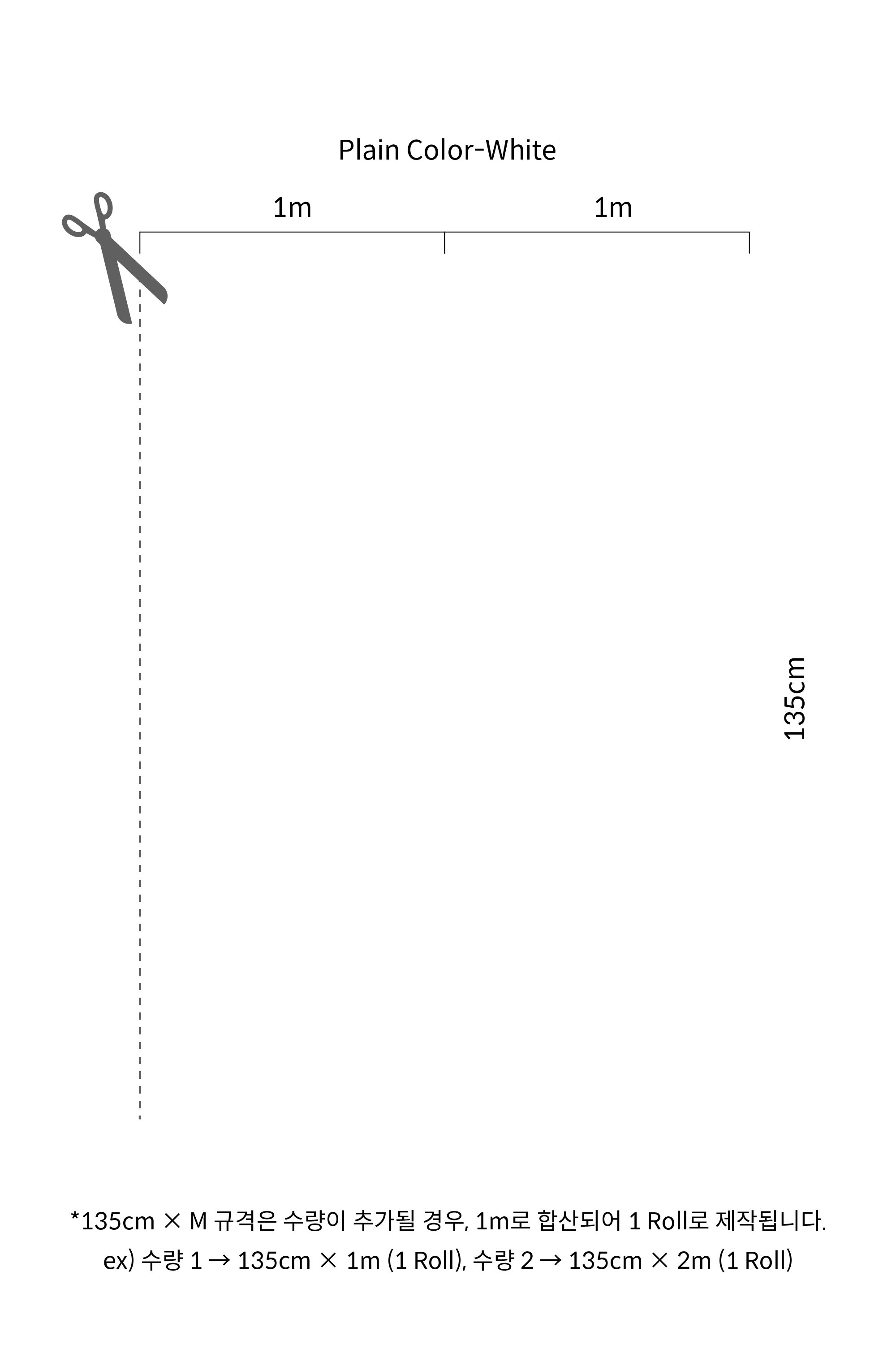 · 여러 롤을 붙일 때는 왼쪽에서 오른쪽으로 붙이시고, 패턴을 이어 붙이기 위해 벽지 우측 끝 흰색 여백 (0.4cm) 위에 겹쳐 시공 하시면 됩니다.